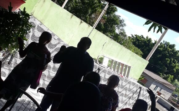 Culto de ar livre pela congregação de Coqueiral